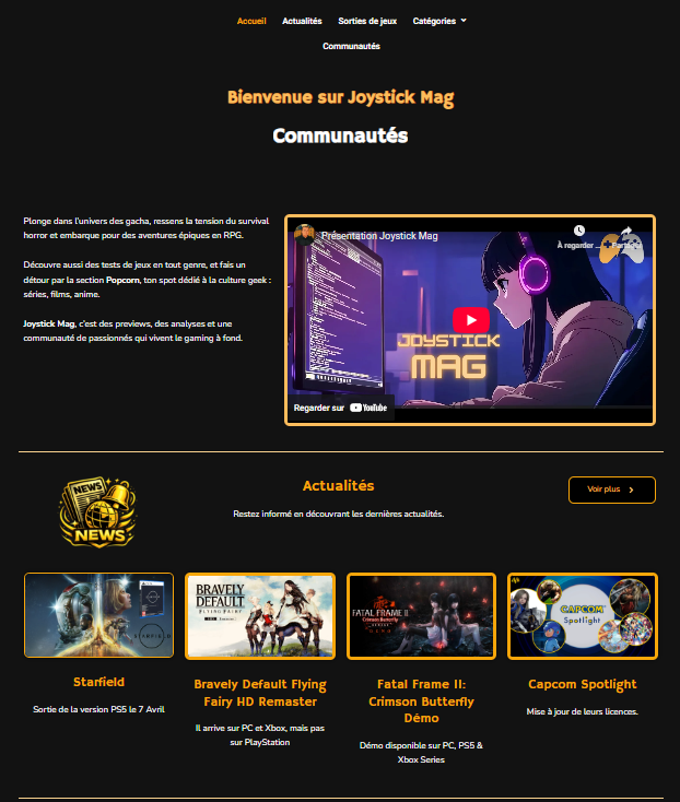 Ce projet est né d’une passion partagée avec mon ami Alexandre : imaginer un site d’actualités gaming à la fois dynamique, accessible et pensé pour les joueurs.